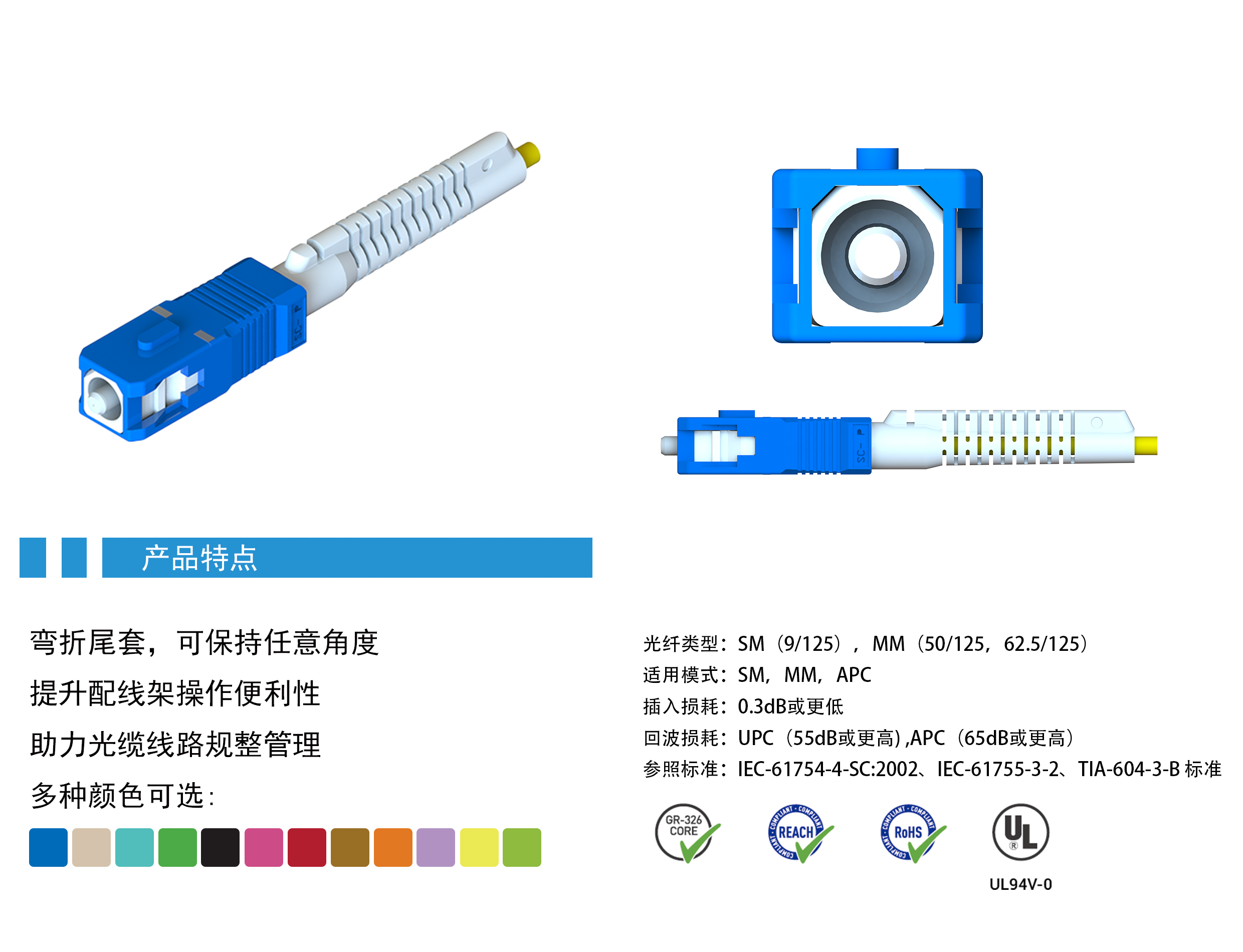 SC 弯折尾套连接器