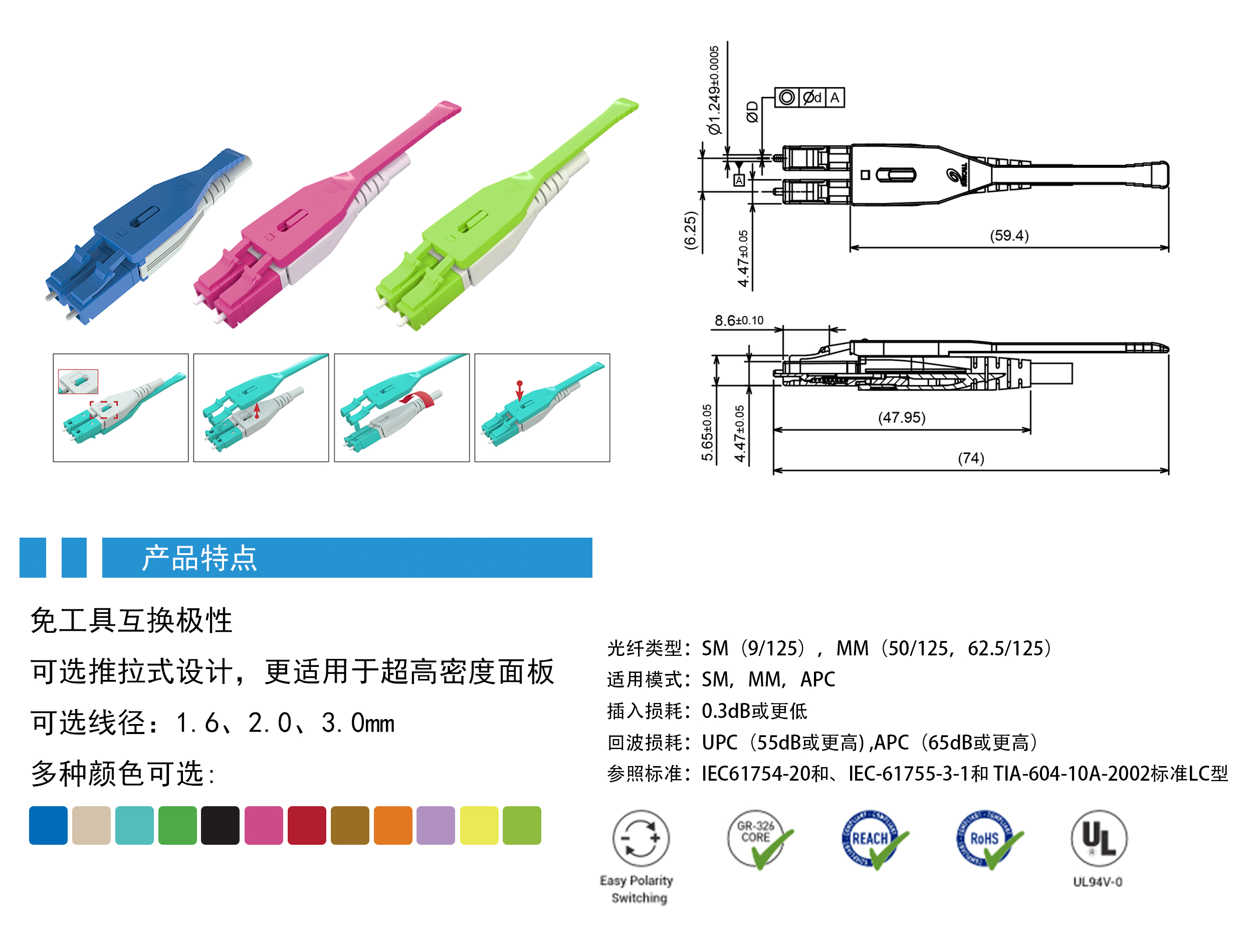 LC Uniboot 连接器 首页 > 产品中心 > 新确光纤连接器 > LC Uniboot 连接器 LC 一体式推拉杆连接器 V4 上一页:LC 一体式推拉杆连接器 V5下一页:LC 一体式尾套连接器 V5