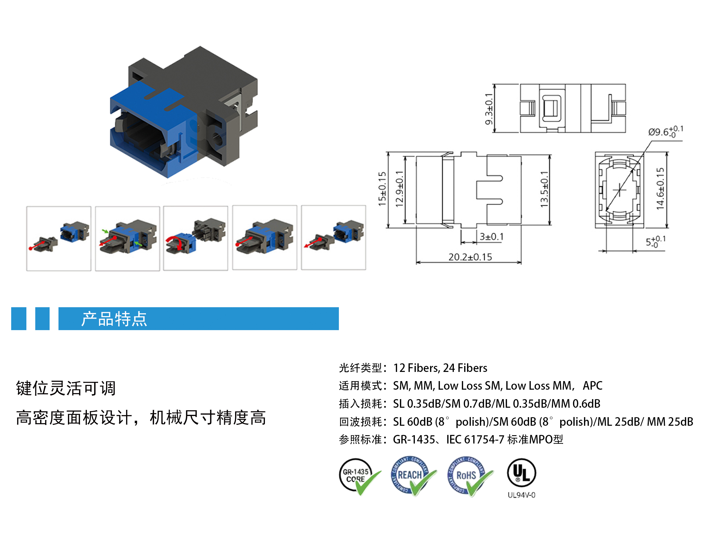 MPO 可换键适配器